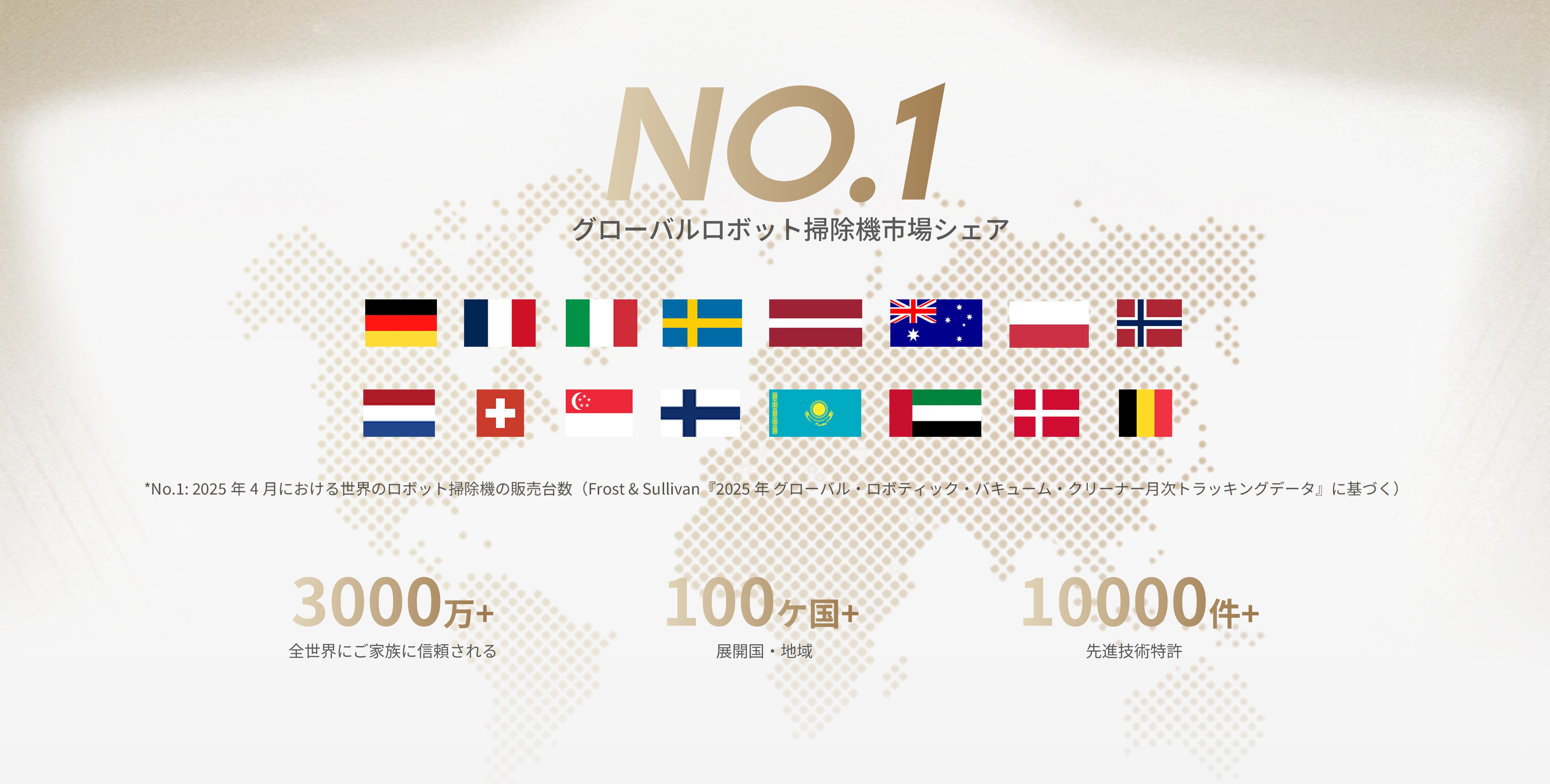 6cmの段差に登れる・360°スマートマッピング・3D構造化ライト・LEDライト・20,000Pa吸引・絡みにくいデュアルブラシ・5つクリーニングモード・SideReachサイドブラシ・モップ拡張機能・自動ゴミ収集・自動温水洗浄&乾燥・自動給水・洗浄液自動補充・ウォッシュボード自動洗浄・OmniDirt検知テクノロジー2.0・水分センサー・220分(最大205㎡)の連続稼働