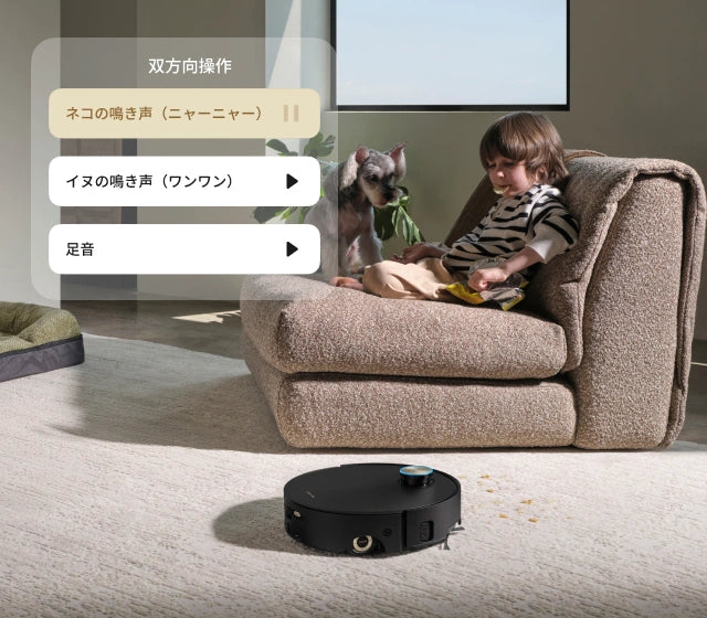 ※カーペットブースト:このモードはクリーニングアプリでご利用いただけます。カーペットを検知すると、ロボット掃除機は最大吸引力で掃除を開始します。静音モードではご利用いただけません。