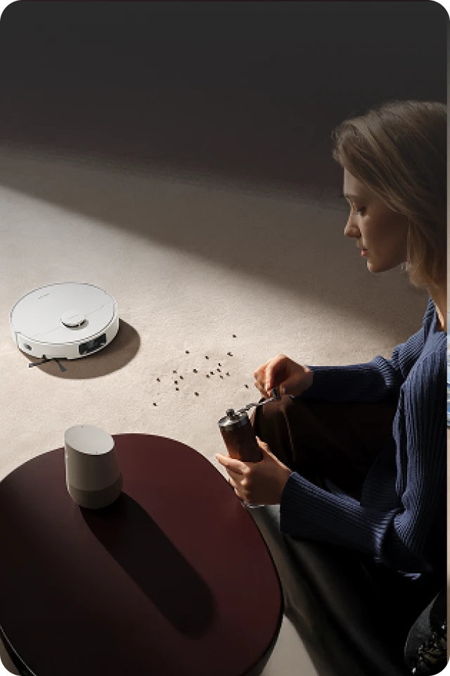 *部屋の隅々まで99%以上掃除:標準モードで、サイドブラシは規定区域内の内直角の清掃率が99%以上に達します。当社の社内研究所のデータに基づきます。実際の性能は異なる場合があります。