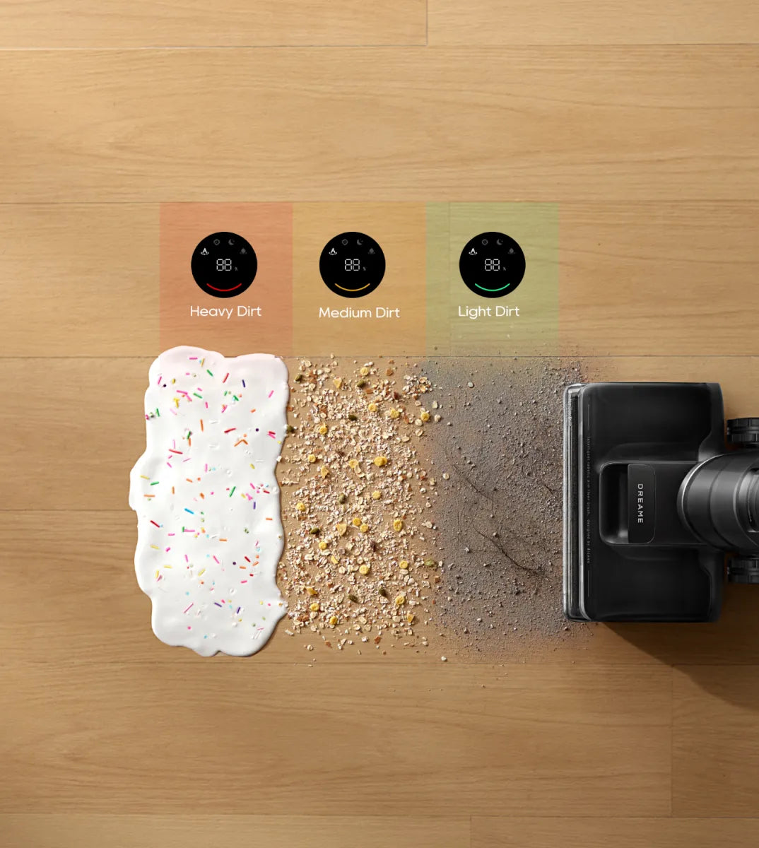 スマートモードを使用すると、検知した汚れに応じて吸引力と吐水量が調整されるため、手動で設定を合わせる必要がありません。また、ニーズに合わせて別のモードに切り替えることもできます。