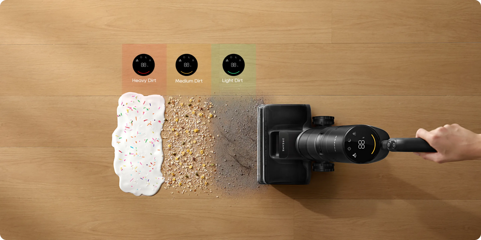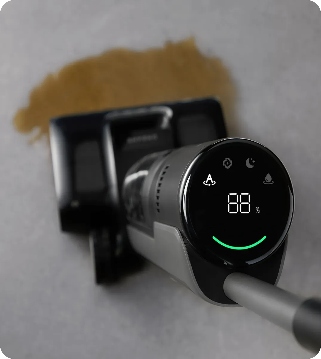 重要な情報を分かりやすく表示。大きな LED ディスプレイとインテリジェントな音声ガイドにより、最適な清掃方法をリアルタイムで確認できます。