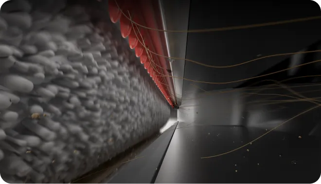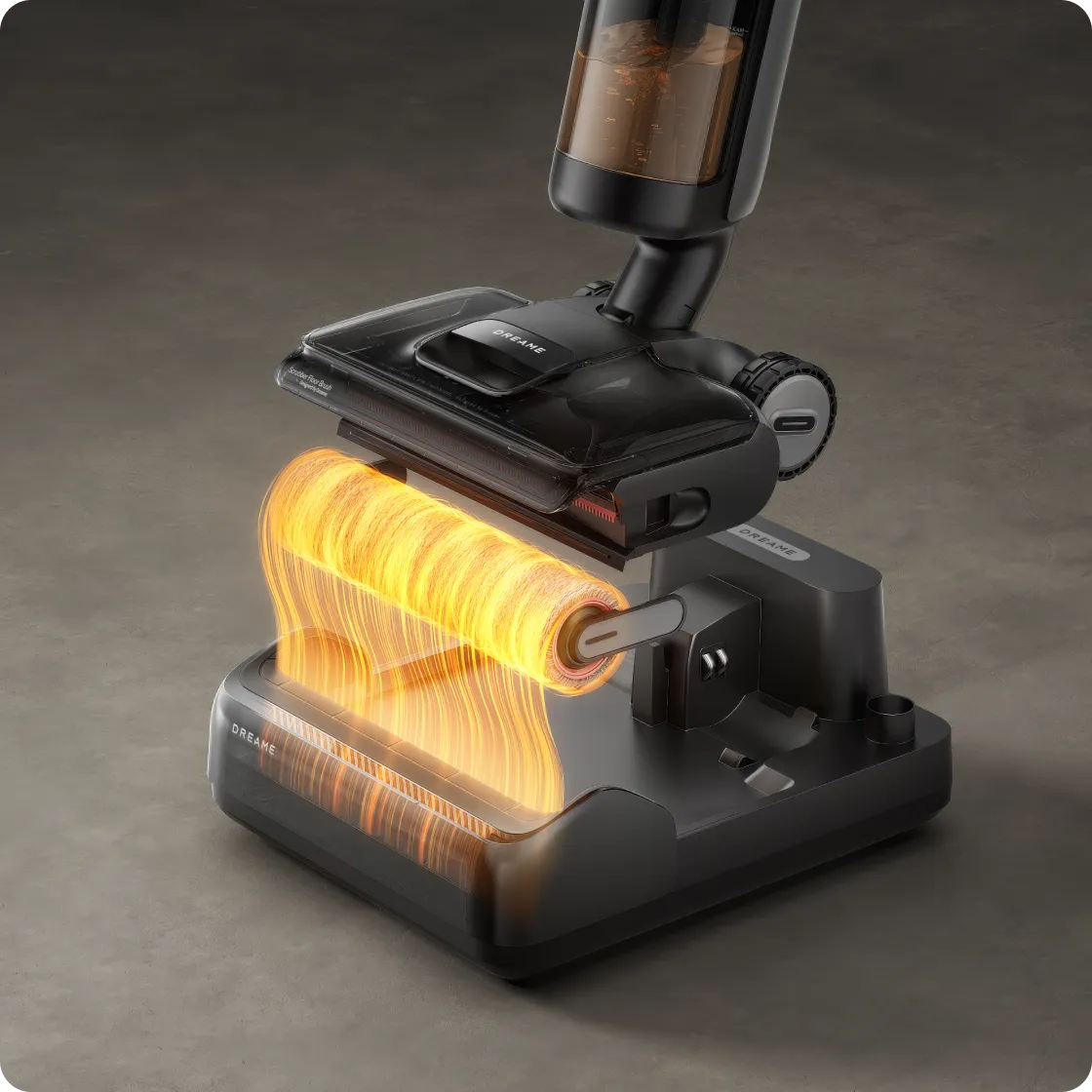 掃除が終わったら、パイプ内洗浄→ブラシの双方向回転+90℃温水洗浄→高速回転+温風乾燥まで自動で実行。ブラシに残った汚れや雑菌・ニオイの原因をしっかり洗い流し、高温の温風で乾燥させることで、ふわふわの仕上がりをキープします。湿気の多い梅雨時や、洗い物が乾きにくい冬場でも、ブラシがジメジメしたまま放置される心配が少なく、いつでも衛生的な状態で次の掃除を始められます。
