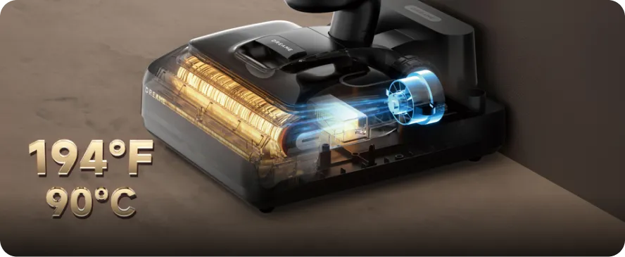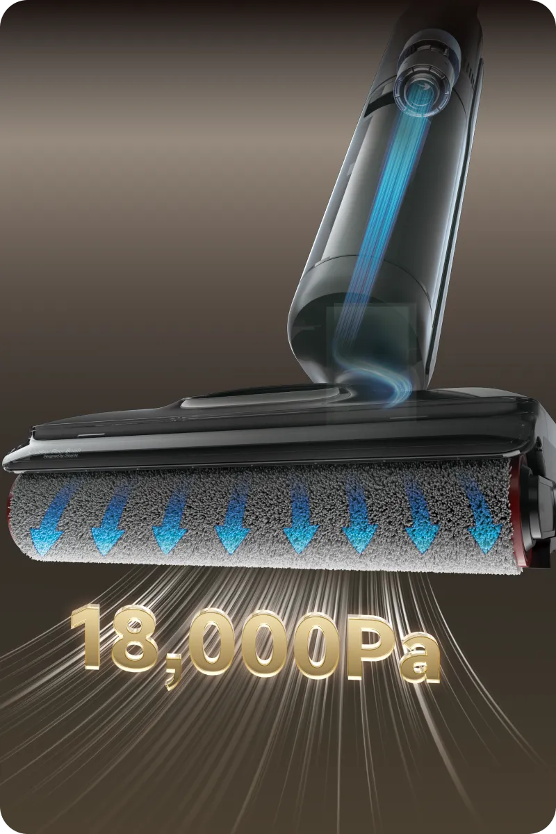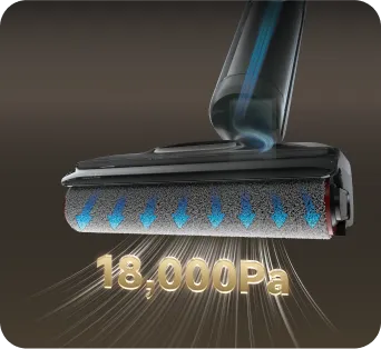 18,000 Pa のパワフル吸引で乾湿両用クリーニング