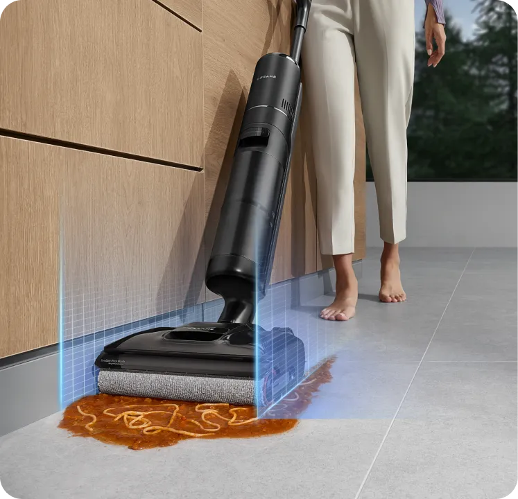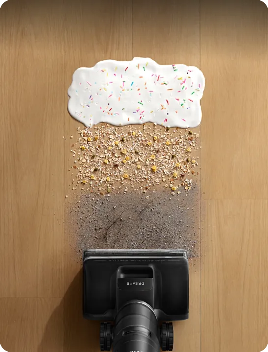 最大18,000Paの強力吸引で、スパゲッティやコーヒー豆、シリアル、ペットフードの粒などの固形ゴミはもちろん、ジュースやスープなどの液体汚れまでしっかり吸引。水拭き跡はわずか約0.2gに抑え、フローリングの残留水分を少なくして床をやさしく保護します。朝の忙しい時間にこぼした飲み物、子どものおやつの食べこぼし、ペットの水飲み場まわりのビチャビチャ汚れなど、面倒な「床の後片付け」をこの1台で素早く完了できます。