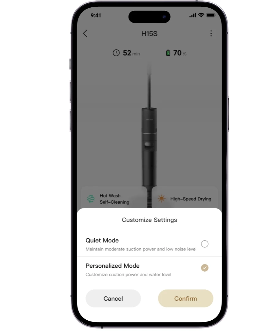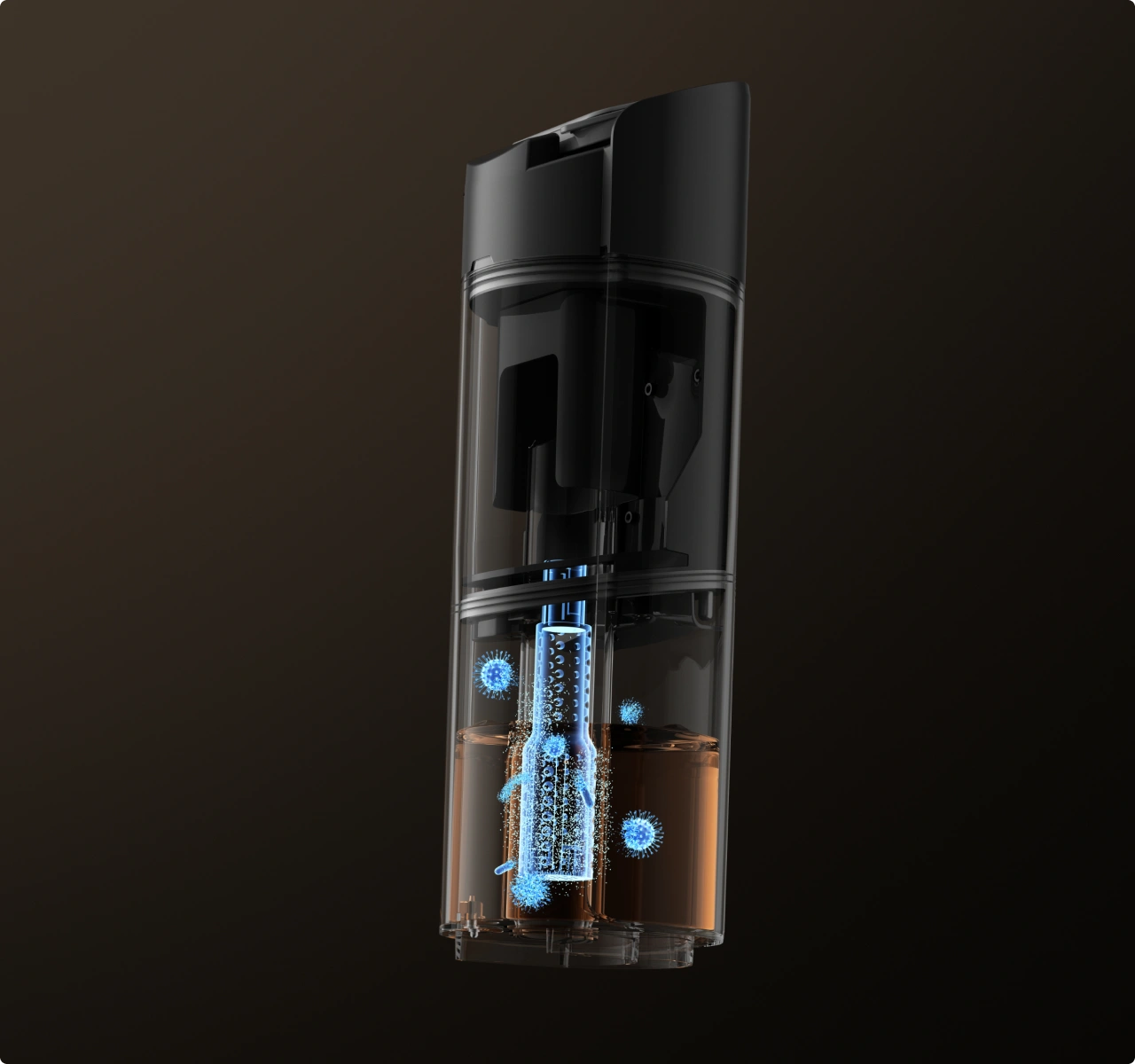強力な吸引力で、切断された髪の毛を直接汚水タンクに吸引。