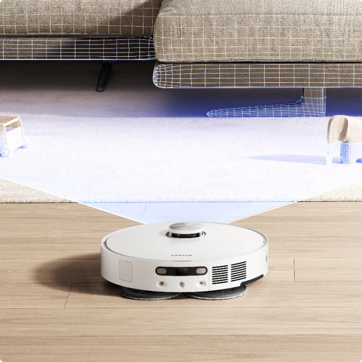 ロボット掃除機の「MopExtend RoboSwing」機能により、狭いすき間や家具の下まで徹底清掃。エッジ認識&モップ伸縮機能により、壁際やテーブルの脚まわりのゴミも逃しません。