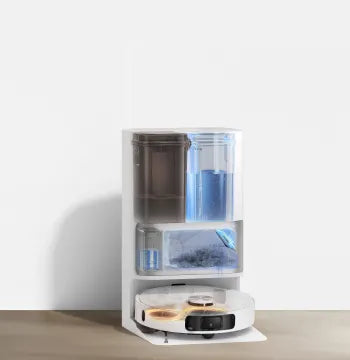 このロボット掃除機は、ゴミの自動収集、給水、モップの自動洗浄・熱風乾燥、洗浄液の自動補給までを一台で実現。ハイテクな全自動ベースステーションで、毎日の掃除を完全自動化します。