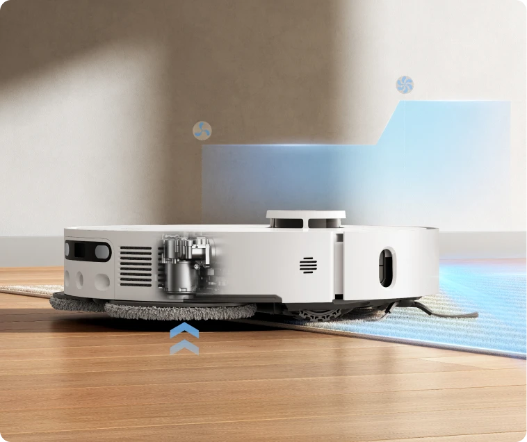 モップエクステンド機能を搭載し、床を清掃する際に壁際センサーが働き、 自動的にモップが壁際まで伸びることで、掃除の死角を無くして徹底的にすきまの清掃を行います。RoboSwing テクノロジー:バイオニック技術で家具と地面の隙間、最大4cmの拭き掃除を実現。