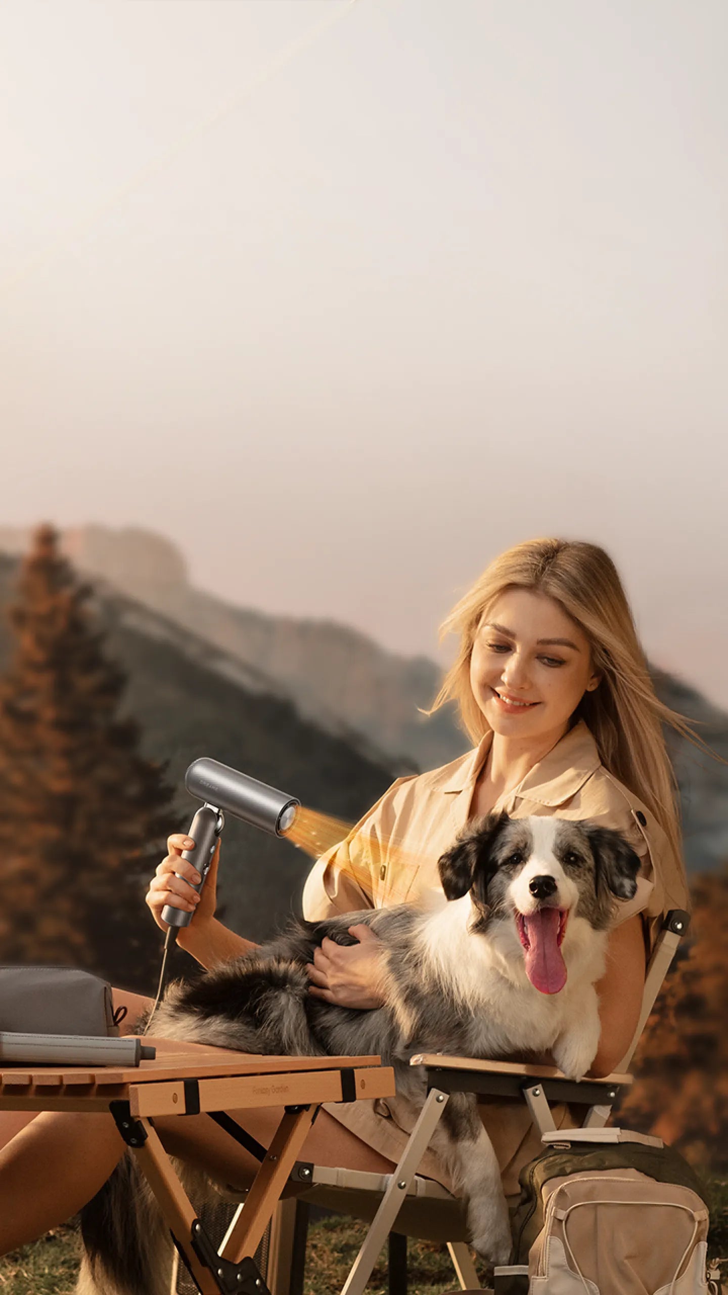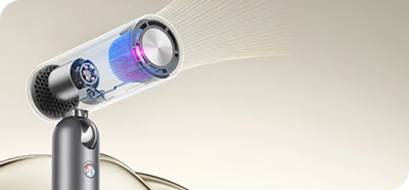 11万回転*の高速モーターで、70m/s*の強力な風速を発生させ、しっかりと濡れた髪でも素早く乾かし、短髪は40秒*、肩までの髪は2分*で乾燥させます。特に忙しい時間帯では、準備にかかる時間を有効に活用することができます。