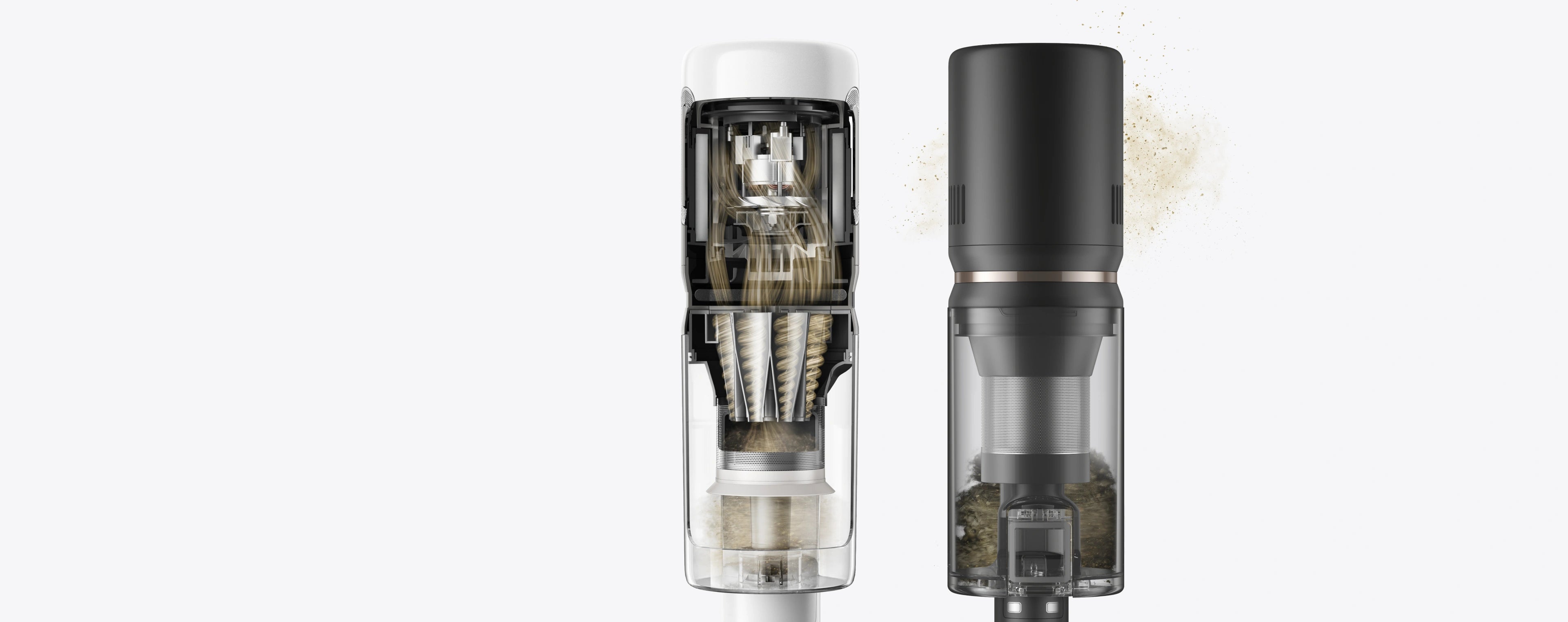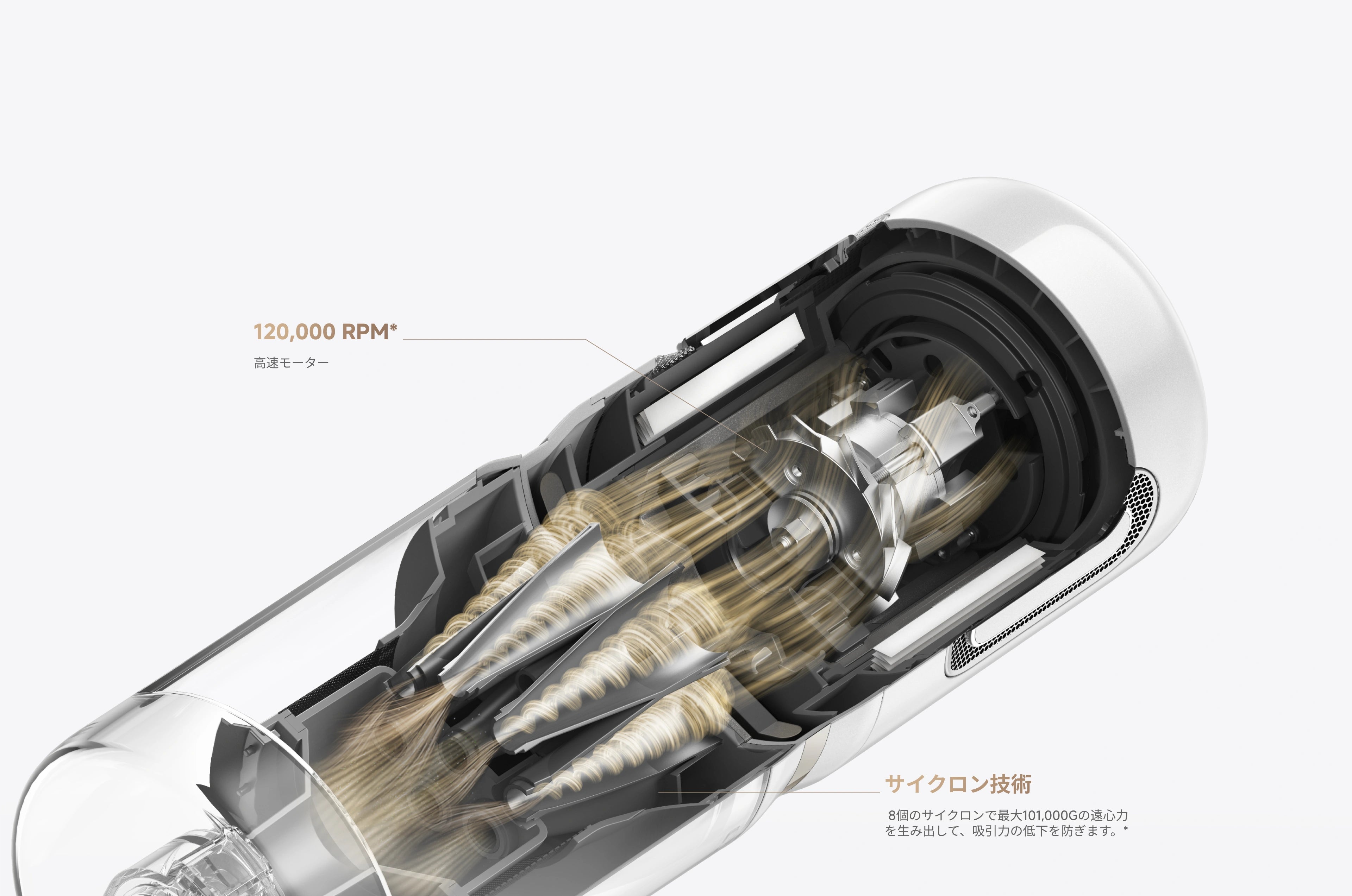 【軽量でもパワフル|80AWの強力吸引&8重サイクロン】超軽量ながら最大80AW*の強力吸引を実現。先進の8重サイクロンシステムがホコリを強力に分離し、吸引力の低下を防止します。ペットの毛やお菓子のカス、米粒までしっかり吸い込み、いつでも一定の清掃力をキープします。