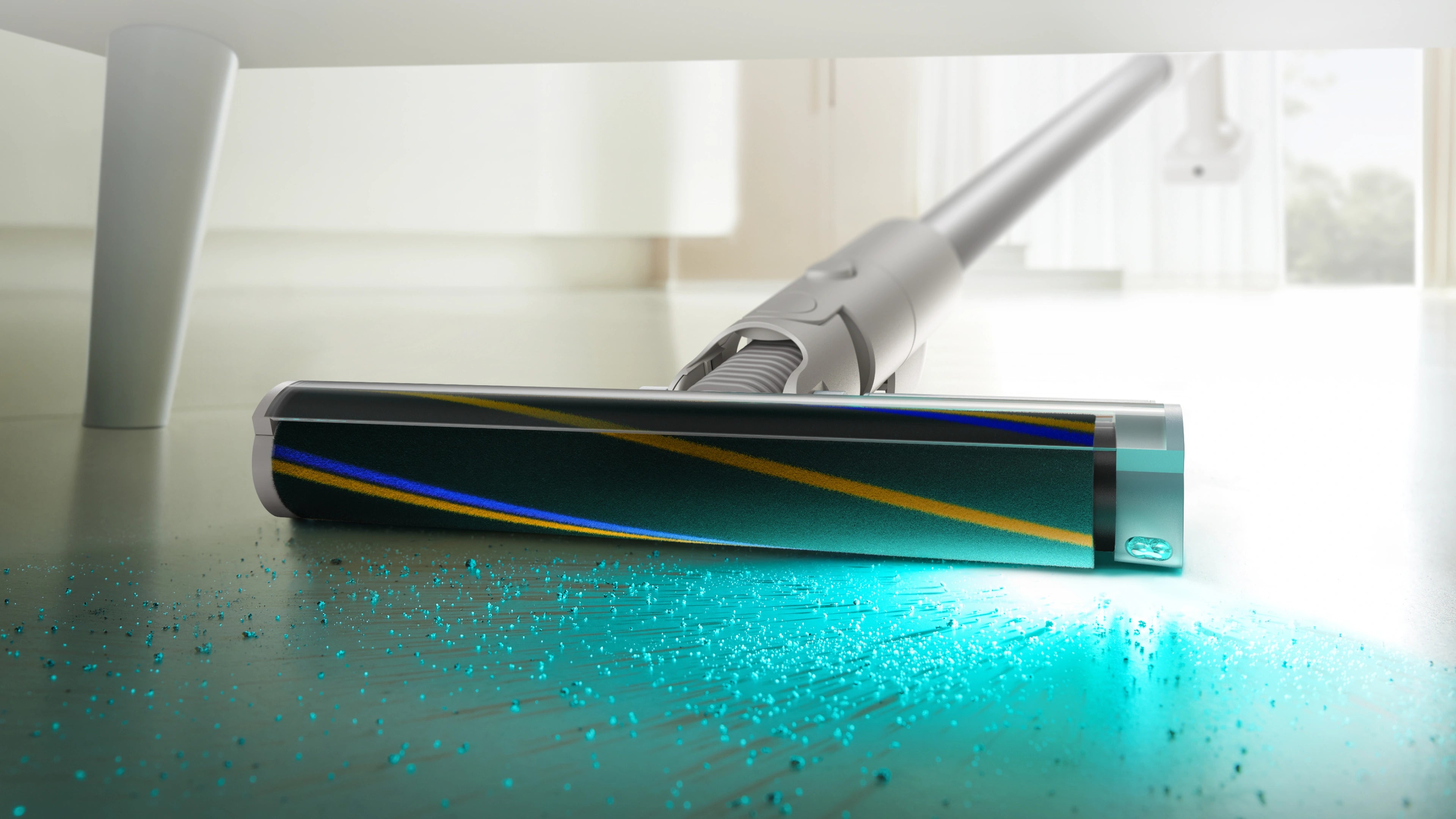 【CelesTectライト&140°広角照射|16倍の可視化清掃】CelesTectライトが暗い隅や家具下を140°の広角で照らし、通常の16倍の可視化を実現。目に見えないホコリや髪の毛もくっきり見えるため、取り残しゼロの徹底清掃が可能です。250mmワイドブラシが広範囲を一気にカバーし、11cmの狭い隙間にもスマートに対応します。