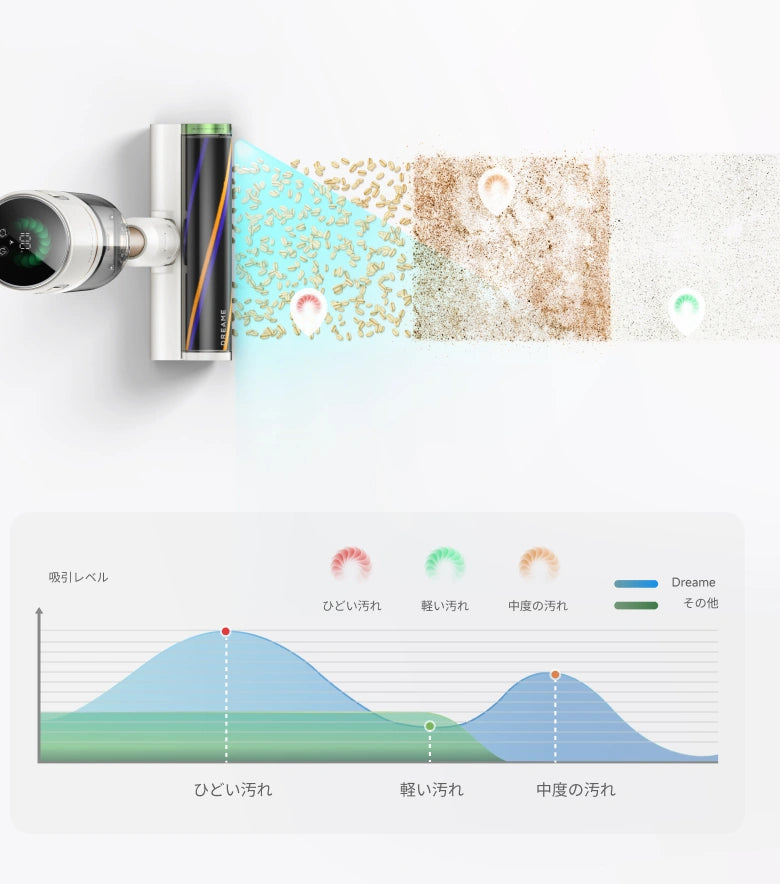 *60分間:Dreame研究所で、エコモードでコンビネーションツールを使用して行った試験の結果に基づきます。レポート番号ZM-250618-008。